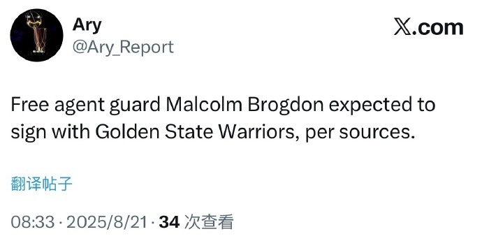 在自由市场上的球员越来越少情况下,如今根据记者Ary报道,32岁的后卫布罗格登预计签约勇士。至于此前《露天看台》名记Jake Fischer也报道,布罗格登有加盟勇士的可能。